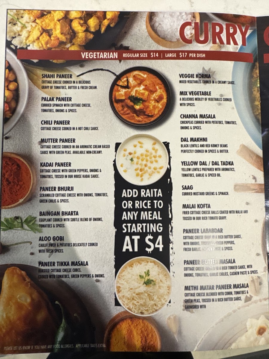 While some dishes, like the Dal Makhni and Tandoori Paneer, have experienced mixed reviews, customers consistently applaud the welcoming ambiance and attentive service, particularly from staff members like Komalpreet. The decor is clean and inviting, making it an excellent choice for families seeking a quality dining experience.